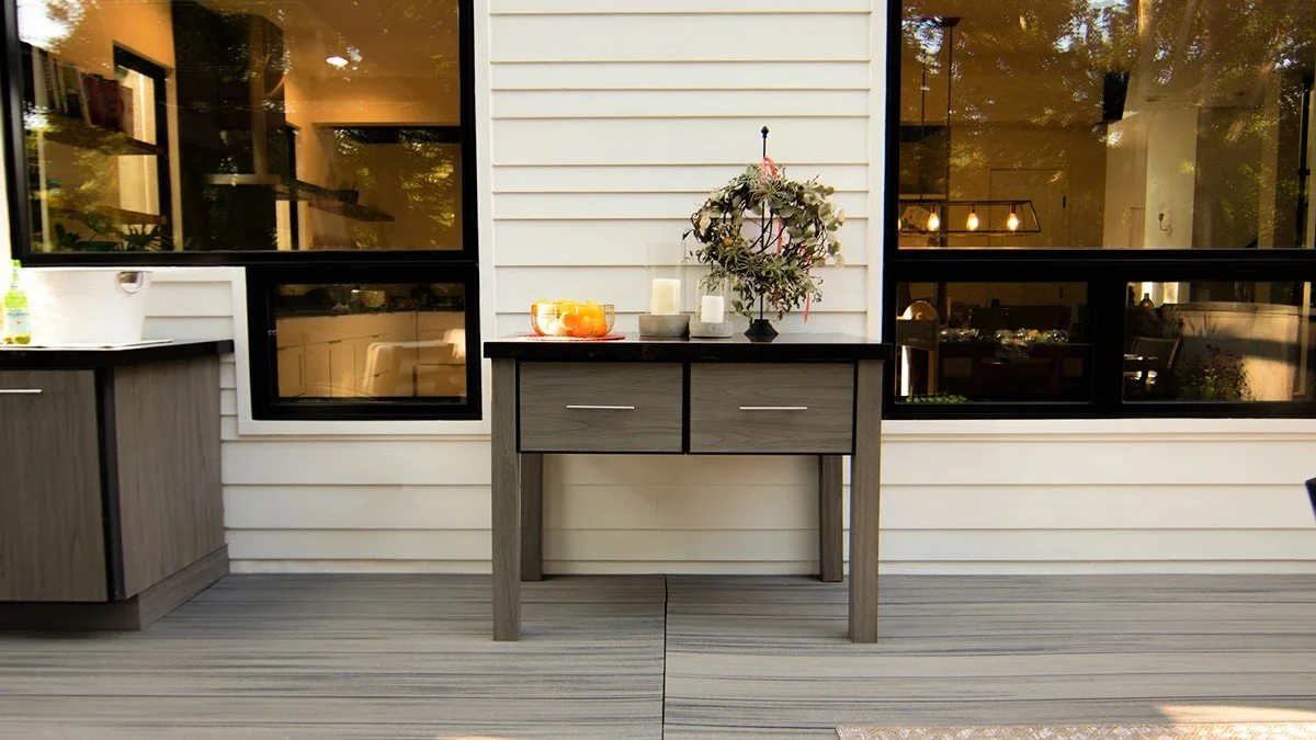 Sleek Stainless Steel, Matte Black or Aluminum frame with vertical grained CypressKast or TeakKast flat panel.